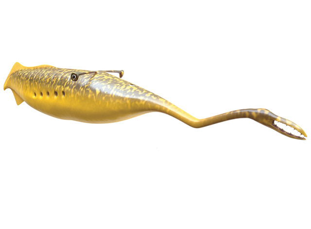 Medía unos 10 cm y poseía un cuerpo delgado, sobre el que tenía una extremidad fina y alargada en la parte superior con un ojo en cada lado que se encargaba de proteger los nervios ópticos. Además, poseía una aleta caudal y mandíbulas al final de una especie de trompa. En la imagen se aprecia la recreación de este ser vivo según la nueva descripción.