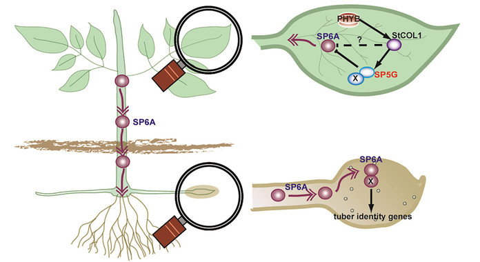 La duración del día es percibida en las hojas, donde proteínas fotosensibles son capaces de activarse en la presencia de luz. En la variedad de patata analizada en este trabajo, en las épocas del año en que hay menos horas de luz, se produce una proteína (StSP6A) que viaja por el tallo hasta la raíz llevando el mensaje de que es el momento de empezar a producir tubérculos.