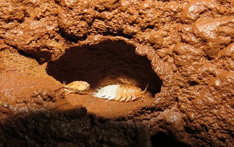 Esta minúscula cochinilla, anfibia, ciega y despigmentada, utiliza refugios de barro para mudar su exoesqueleto. Que se sepa, sólo habita en una cueva de Brasil que se inunda en la época de lluvias.