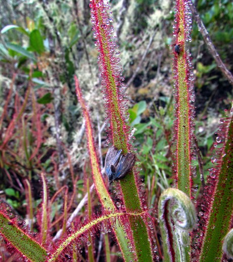 Esta bella planta carnívora fue descubierta a través de Facebook. Según el museo, la Drosera es el género más numeroso de plantas carnívoras y esta especie es la más grande descubierta en América. Sólo subsiste en la cumbre de una montaña, lo que la hace muy vulnerable. Como otras carnívoras, fabrica una mucosa similar al rocío con la que atrapa a sus víctimas.