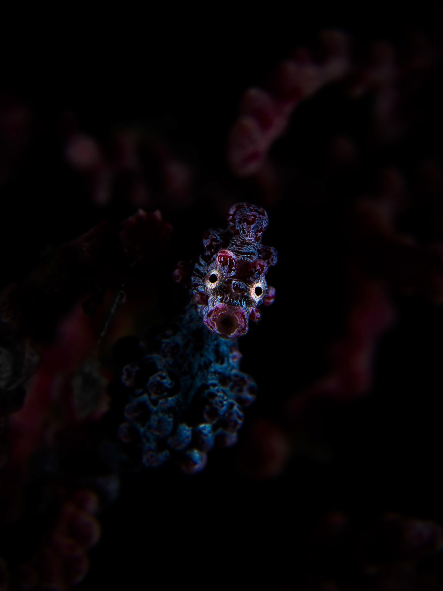 El fotógrafo tuvo que utilizar la mínima luz posible para no espantar al asustadizo caballito de mar. El jurado calificó la imagen de fascinante.