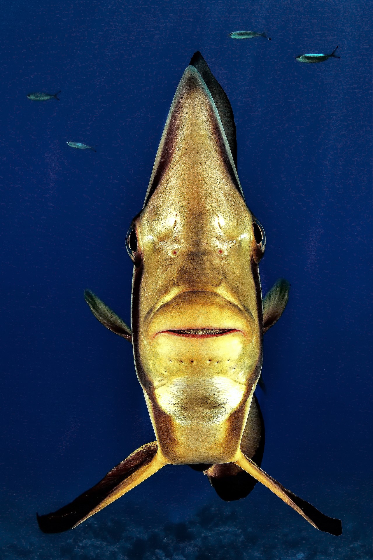 Con paciencia y pericia el autor logró encontrarse frente a frente con este pez en aguas del Mar Rojo. El jurado la considera prácticamente perfecta por los colores, el contacto visual que logra con el animal, la plasticidad de las formas y el encuadre, con los peces de la parte de atrás.