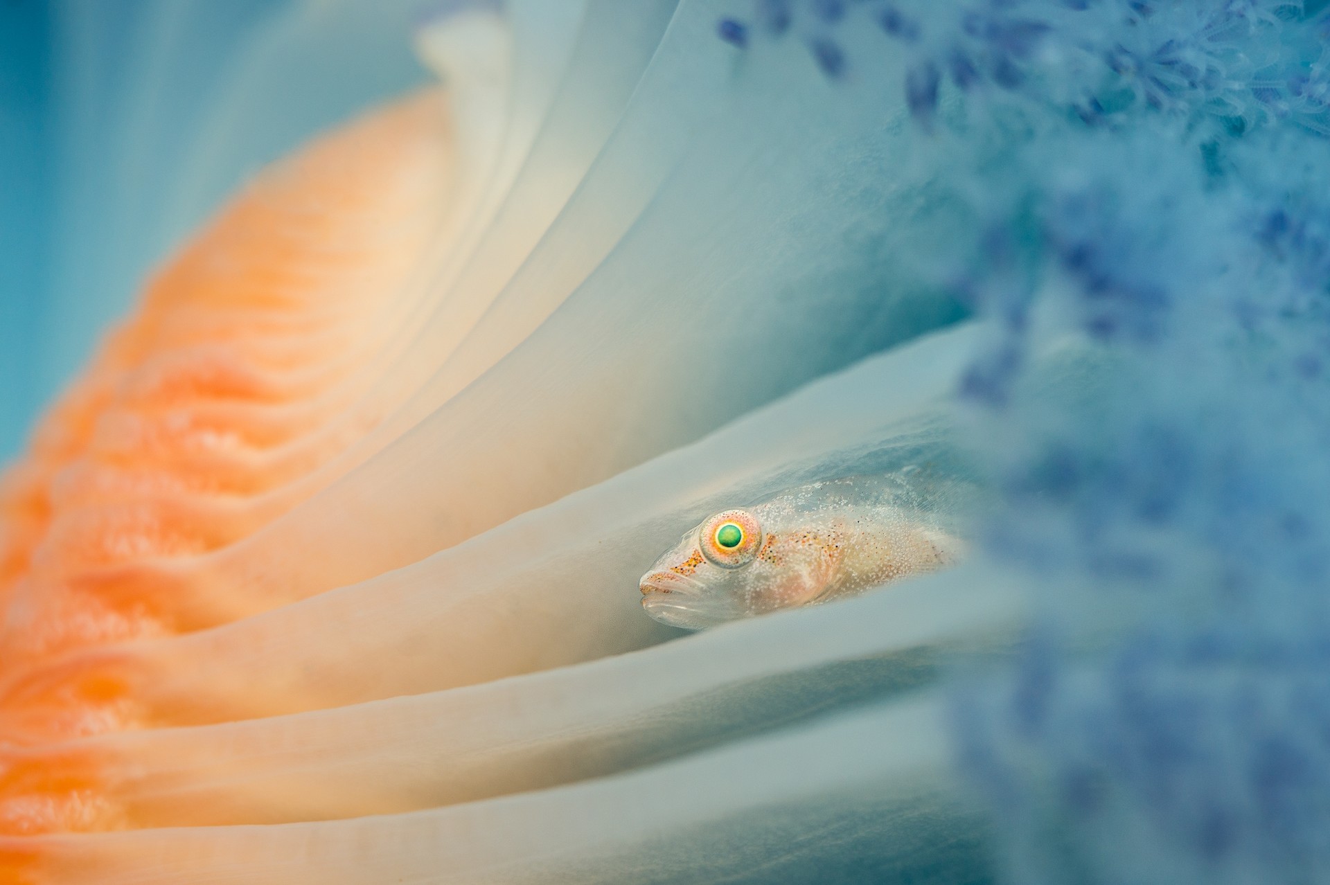 La fotógrafa logró retratar a este minúsculo pez oculto en una anémona. El jurado ensalzó la belleza de la combinación de colores.