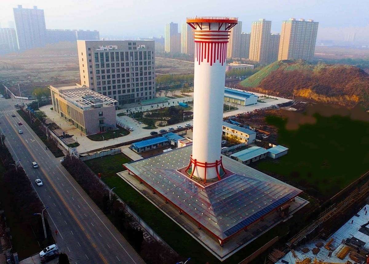 Un recinto de vidrio rodea la base de la torre. El aire contaminado dentro del recinto se calienta con energía solar. El aire caliente se eleva y se mueve libremente dentro de la torre, pasando a través de capas de filtros. La torre fue construida en 2016 en Xi'an, una ciudad que durante mucho tiempo ha sido afectada por la fuerte contaminación del aire en el invierno. La torre aún está en pruebas.