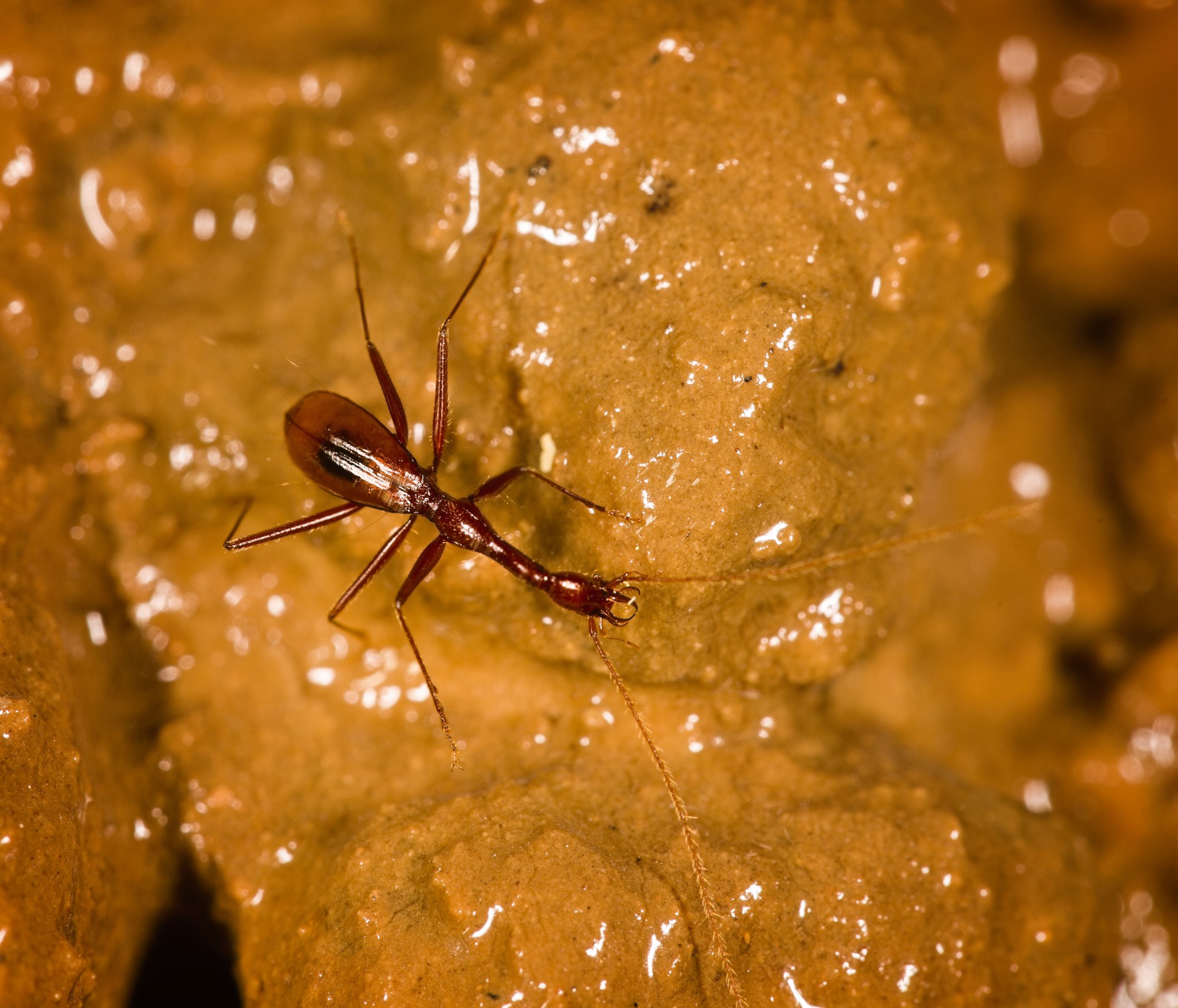 El Nymphister kronaueri, encontrado en Costa Rica, no puede vivir sin las hormigas. En concreto, este raro tipo de escarabajo vive con la Eciton mexicanum, una hormiga nómada que migra cada dos o tres semanas. Esta circunstancia ha hecho que la morfología del escarabajo se haya adaptado perfectamente al cuerpo de su huésped hasta hacerlo casi indistinguible, para no "perderse" en las mudanzas. Es del mismo color, tamaño y forma del abdomen de los animales que lo transportan.