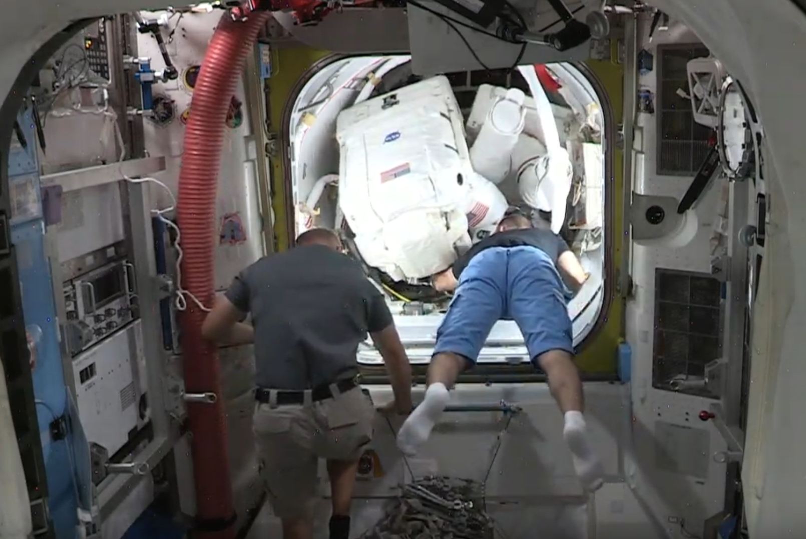 Los astronautas Chris Cassidy y Robert Behnken salen de la Estación Espacial Internacional (EEI) para realizar dos paseos espaciales para reparaciones de la nave.
