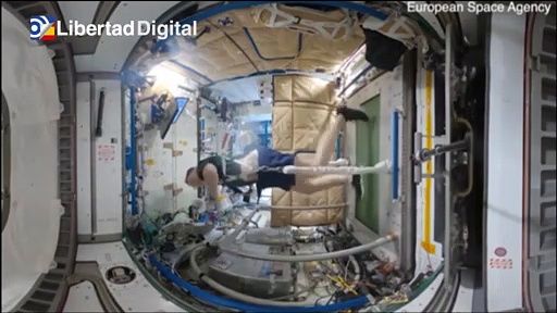 Atado a una cuerda elástica y con la ayuda de un arnés. Así se las ha ingeniado un astronauta para correr sin gravedad. Un peculiar gimnasio a 400 kilómetros de la Tierra.