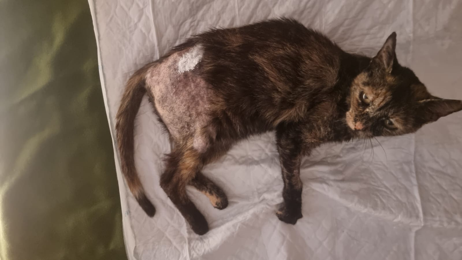 La gata ha sido operada este jueves y, aunque ha sobrevivido, tendrá que someterse a una nueva operación en dos meses: "La han destrozado tanto que ahora no puede reconstruirse aún la cadera", señala Gema.