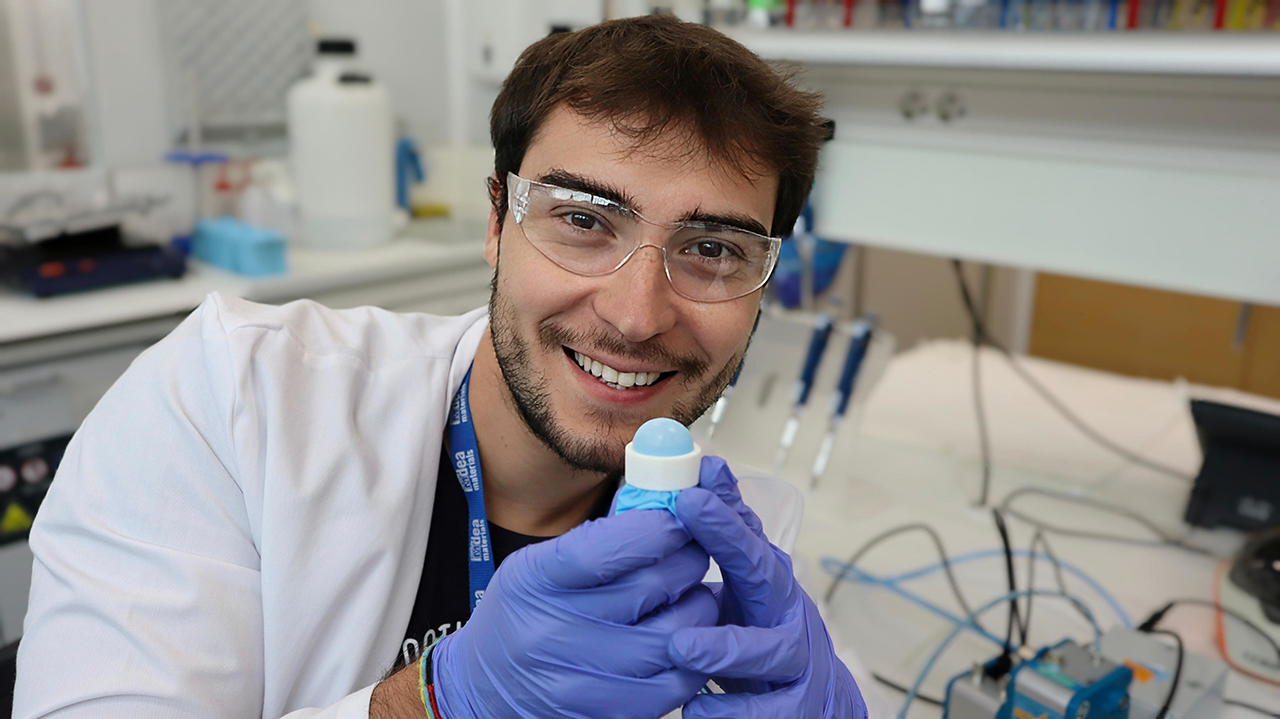 El proyecto en el que ha estado inmerso, BIOMET4D, financiado por la Unión Europea, está relacionado con la craneosinostosis. Este es un trastorno presente al nacer en el que una o más articulaciones fibrosas entre los huesos del cráneo del bebé se fusionan prematuramente. Es decir, el cráneo se cierra antes de que esté completamente formado, mientras el cerebro sigue creciendo, lo que provoca una deformidad en la cabeza. Hoy en día, el tratamiento implica cirugías muy invasivas, que conllevan muchas complicaciones. En este proyecto, se propone utilizar un material inteligente que emplea materiales 4D (biomedicina 4D), capaces de recibir estímulos y responder a ellos, permitiendo que el cerebro se expanda correctamente. Miguel se encarga del proceso de expansión de la piel, ya que esta afección conlleva dicha necesidad. "Yo trabajo en crear esta piel artificial para el bebé", explica.