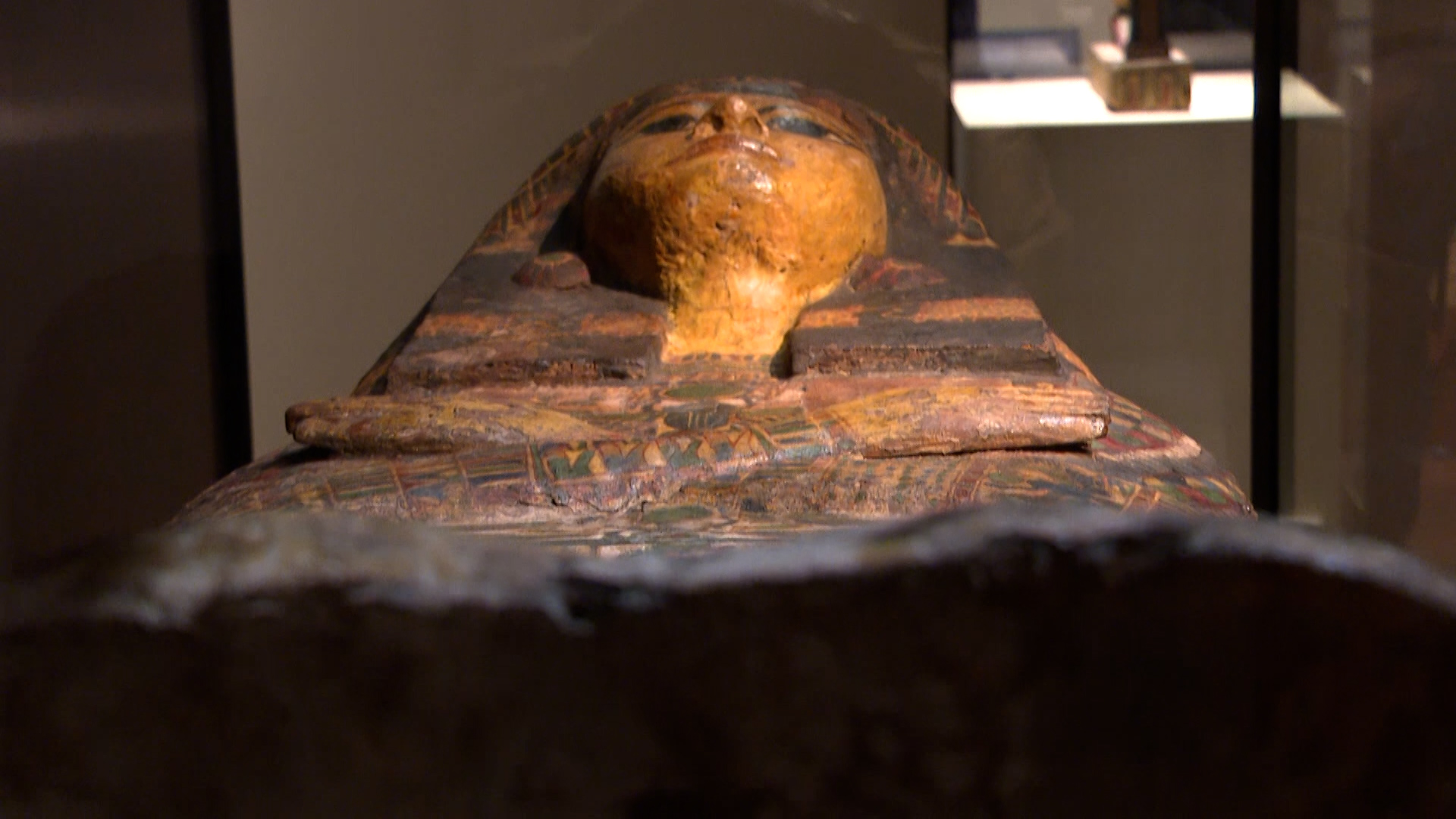 La pieza egipcia de más de 2 metros de largo y madera de sicomoro, consta de caja y cubierta superior con decoraciones pictóricas que se encontraban en un estado "muy delicado" y en las que la difunta aparece representada haciendo ofrendas a los hijos del dios Horus.
