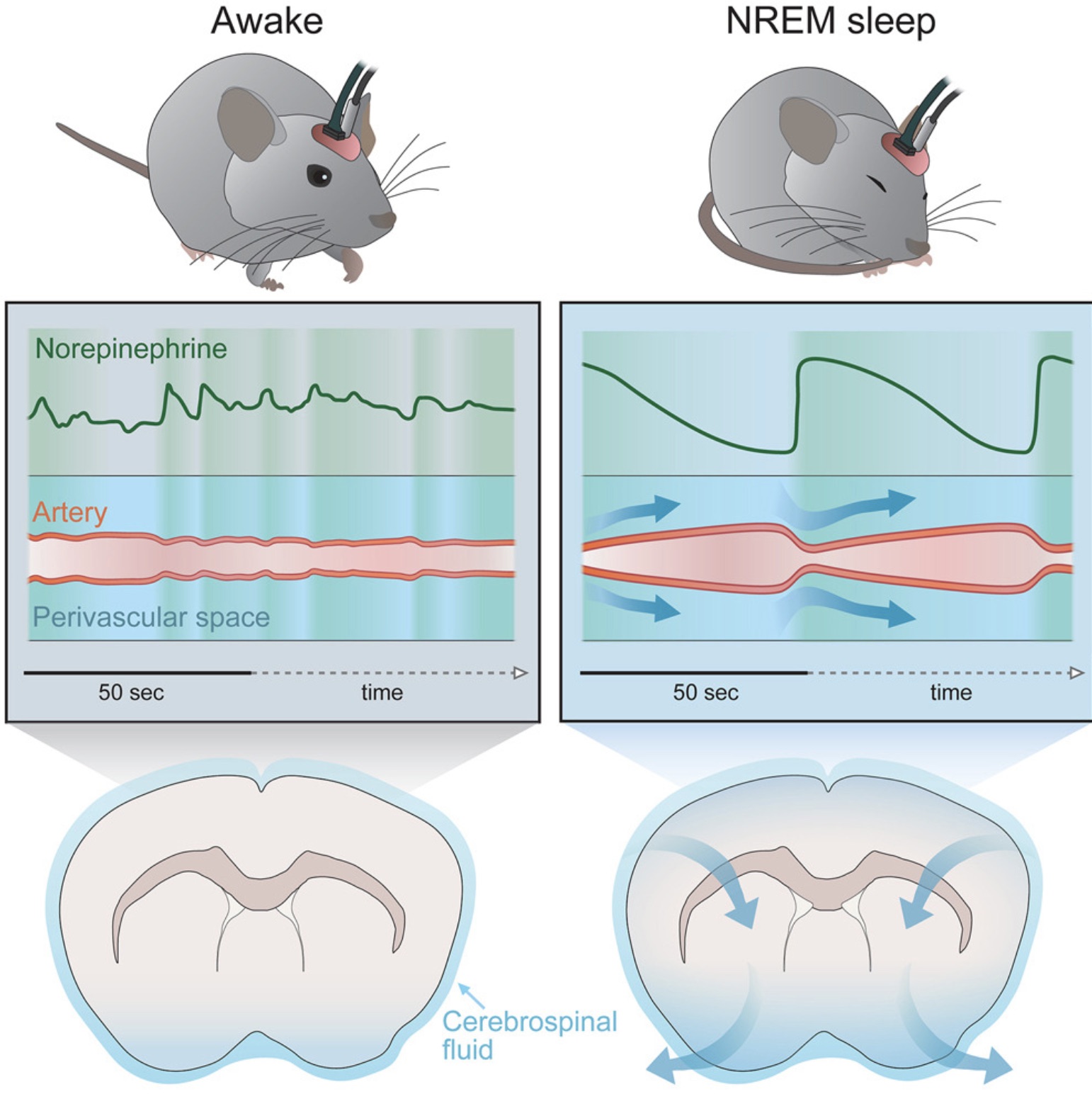 Un nuevo estudio, publicado en la revista Cell, ha dado un paso más al desentrañar cómo funciona este sistema en ratones, pudiéndose extrapolar los resultados obtenidos al funcionamiento en nuestro cerebro. Según los investigadores, las contracciones regulares de los vasos sanguíneos del cerebro, estimuladas por fluctuaciones en los niveles de norepinefrina, son las responsables de mover el líquido cefalorraquídeo y facilitar esta limpieza.
