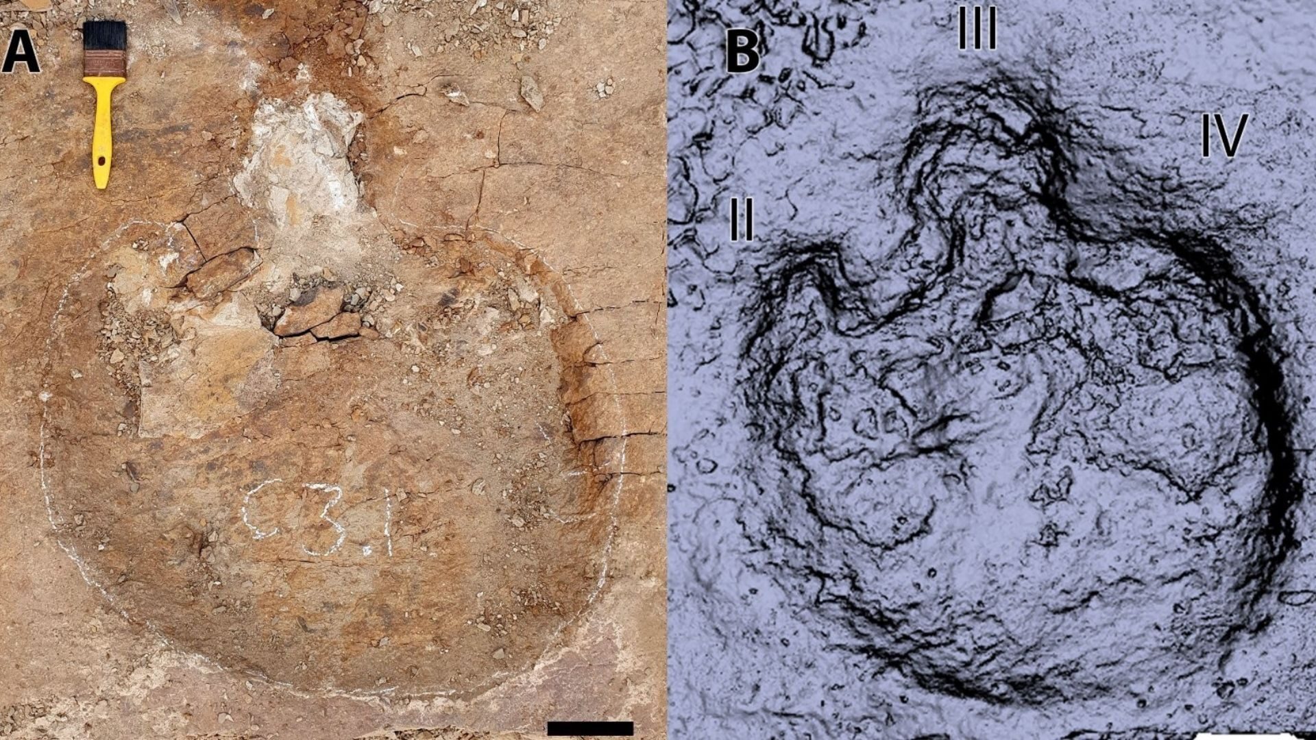 Los investigadores excavaron un área de 29 metros cuadrados en la que identificaron al menos 13 huellas pertenecientes a ceratópsidos, dinosaurios herbívoros con cuernos, procedentes de cinco animales distintos. Junto a ellos, una huella más fue atribuida a un probable anquilosáurido, otro tipo de herbívoro, conocido por su armadura corporal.