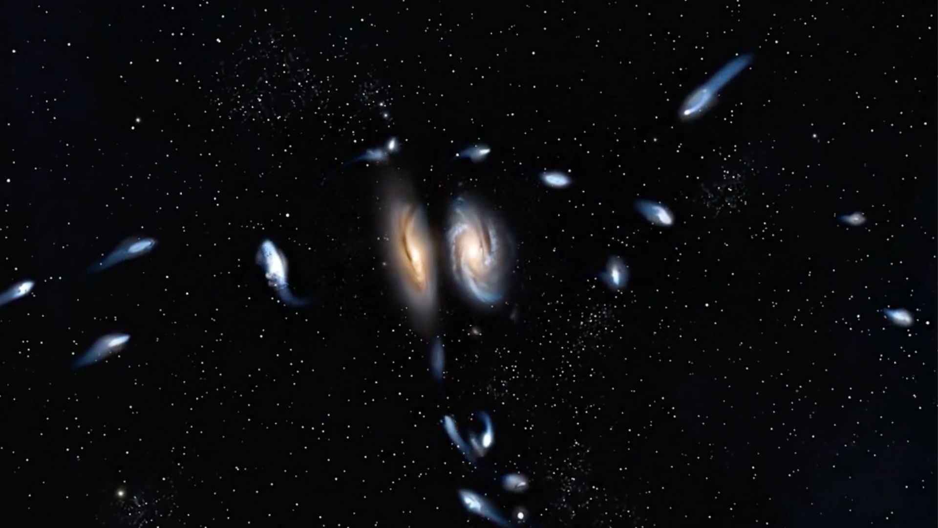 Este proceso es análogo al que, según los modelos, vivirá el Grupo Local cuando la Vía Láctea y Andrómeda empiecen a fusionarse, arrastrando y reorganizando a sus respectivas galaxias enanas.ç