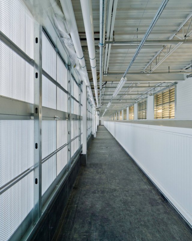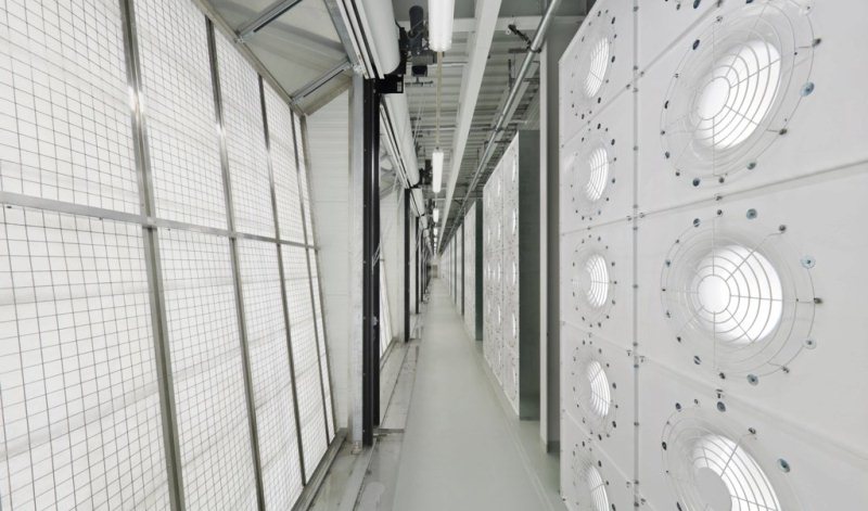 Este es el aspecto de cada uno de los pasillos. Los operarios pueden entrar entre las dos hileras de armarios de servidores para acceder al "pasillo caliente" y hacer sus labores de mantenimiento.