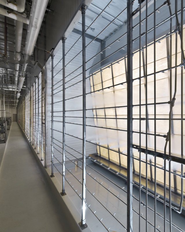 Los pasillos que quedan entre hileras de servidores se denominan calientes porque cada uno de los cuadrados que pueden ver (en columnas de cuatro, treinta filas por armario) son ventiladores que expulsan aire caliente al pasillo.