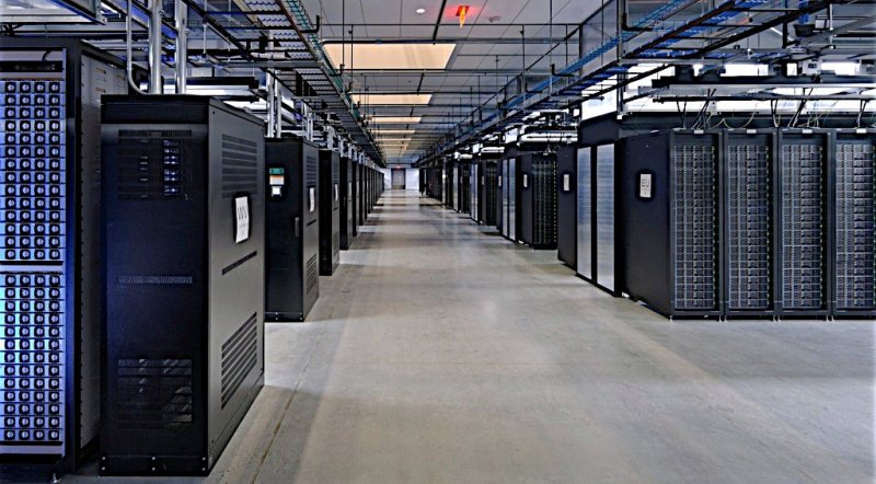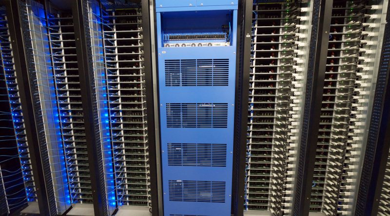 Cada 90 servidores montados en 3 columnas de 30 hay un sistema de alimentación de emergencia.