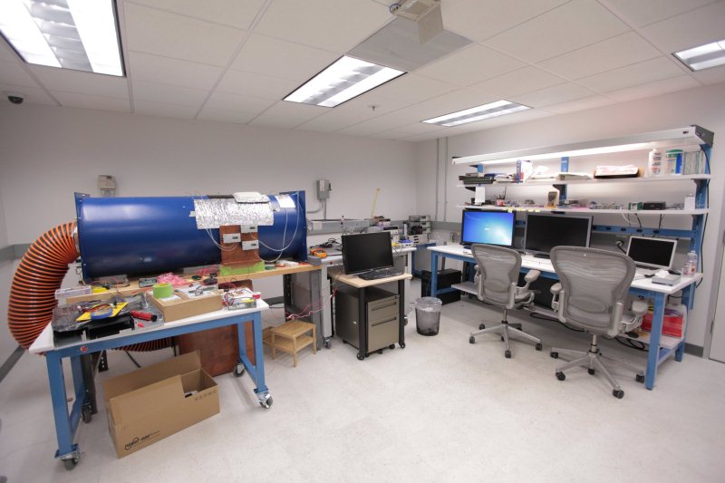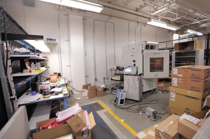 Esta zona ya parece más propia de un laboratorio como Dios manda, llena de cajas, botes y cables mayormente desordenados.