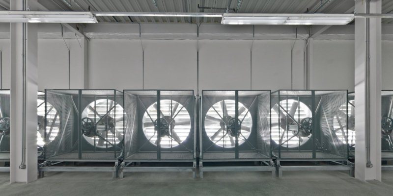 Estos ventiladores se encargan de expulsar al exterior el aire caliente proveniente de los servidores situados debajo de ellos.