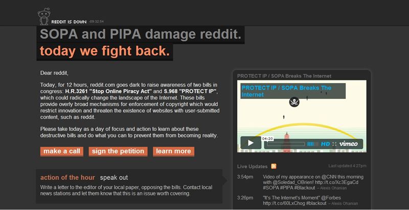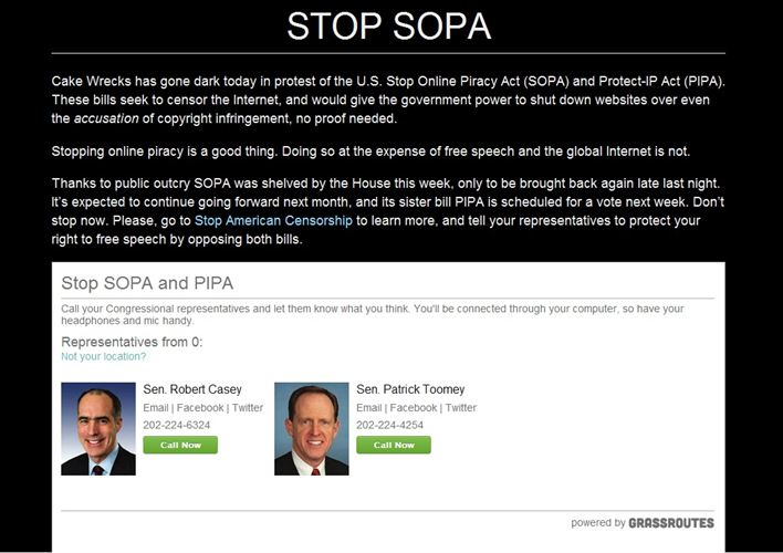 Numerosos sitios web norteamericanos cerraron este miércoles en protesta por las leyes SOPA y PIPA, que consideran que destruirán internet tal y como lo conocemos.