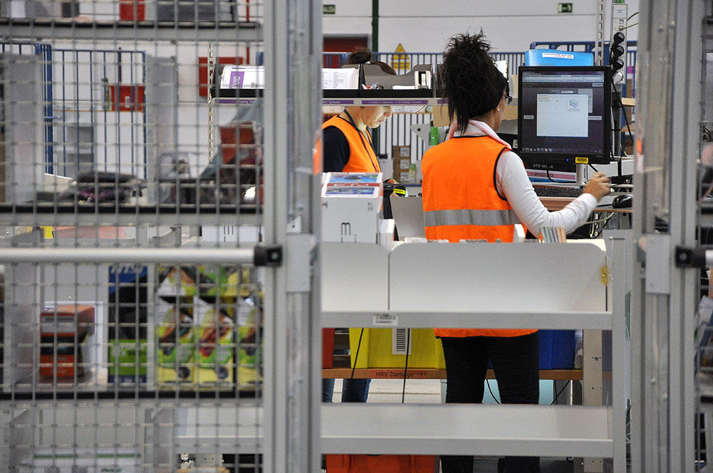 Una de las trabajadoras de la marca clasifica los productos a través del sistema informático propio de Amazon.