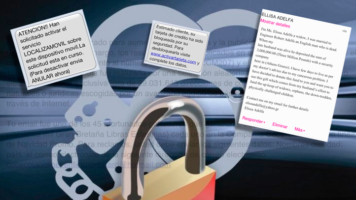 En cuarto lugar destaca el Phishing sobre cuentas en redes sociales y de correo electrónico, que consiste en obtener las claves de usuario para obtener beneficios fraudulentos con datos bancarios, y el engaño más novedoso este año ha sido el envío de SMS para solicitar los datos de la tarjeta de crédito, para desbloquearla, por supuestos motivos de seguridad. También hay intentos de robo de cuentas en redes sociales y correos, para luego utilizarlas para spam comercial en nombre de una fuente de confianza y, lo que es peor, para la distribución de malware.