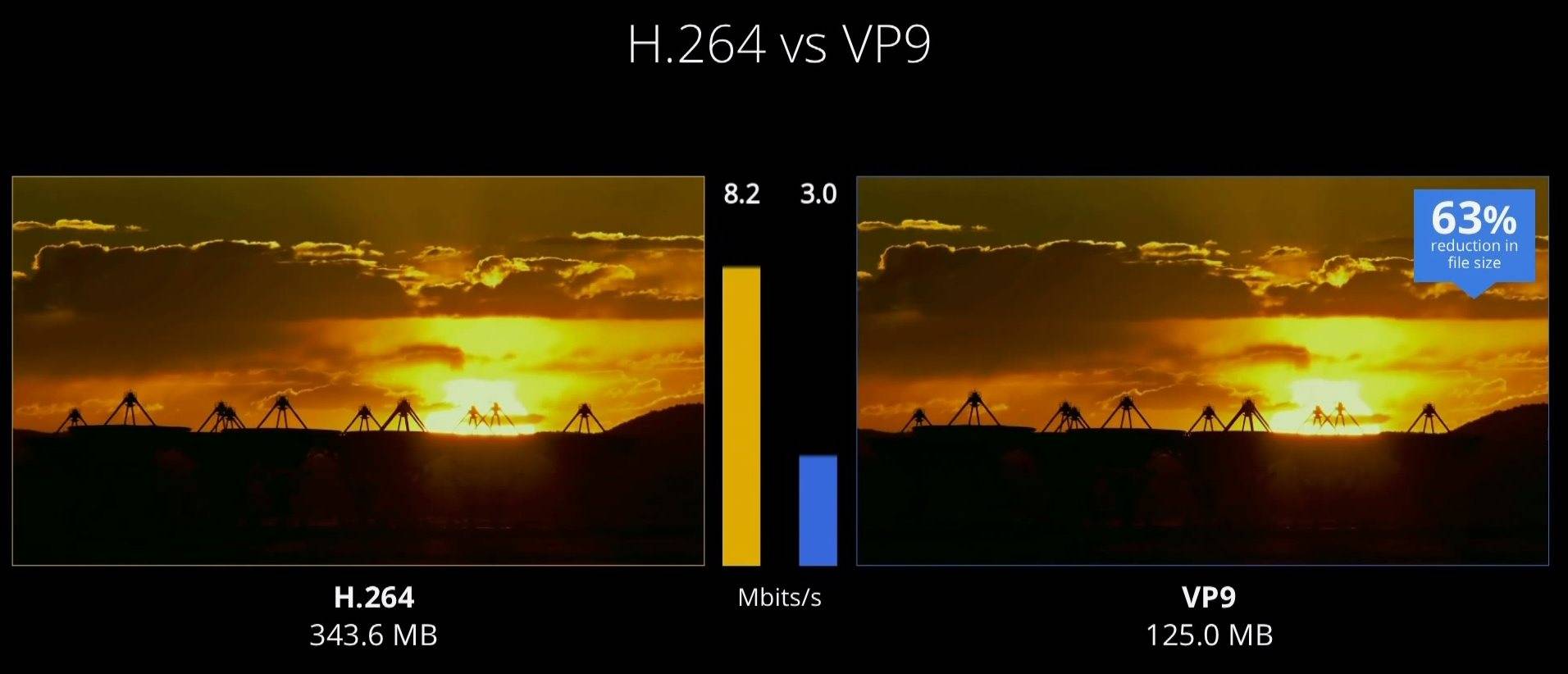 Uno de los problemas de VP8 es que no ofrecía mejoras sobre H.264 y muchos aseguran que sus esfuerzos por evitar patentes hacían que funcionara peor. Por eso es importante el lanzamiento de VP9, del que Google asegura que necesita la mitad de espacio para alcanzar la misma calidad, lo que significa la mitad de espacio en disco para almacenarlo y, sobre todo, la mitad de ancho de banda.