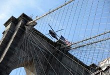 Un helicóptero sobrevuela el puente de Brooklyn. EFE Para los millonarios de Nueva York Blade, el ‘Uber’ de los helicópteros Vuelos por algo más de 500 dólares que conectan Manhattan con las playas de Long Island. Esta es la última moda de los millonarios neoyorkinos.