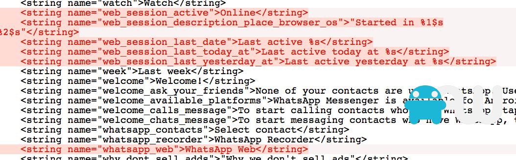 La web holandesa Android World ha desvelado que en el código para Android de la popular aplicación de mensajería instantánea hay diversas referencias a una versión web, en concreto al poco original nombre del servicio y a los textos con los que se informaría al usuario del inicio y cierre de sesión desde ordenadores, seguimiento de estado y la última actividad en la sesión web.