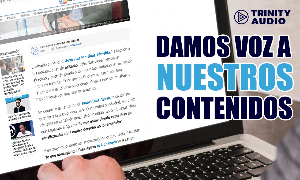 Trinity Audio llega a España de la mano de Audioemotion Media, empresa con 11 años de historia en el desarrollo del mercado de audio digital en España, y de Libertad Digital. Un paso muy importante, pionero en nuestro país y desarrollado con la máxima coordinación y colaboración entre las tres empresas, dentro del constante proceso de modernización de Libertad Digital, con el objetivo de mejorar la experiencia de nuestros lectores, ahora también oyentes.