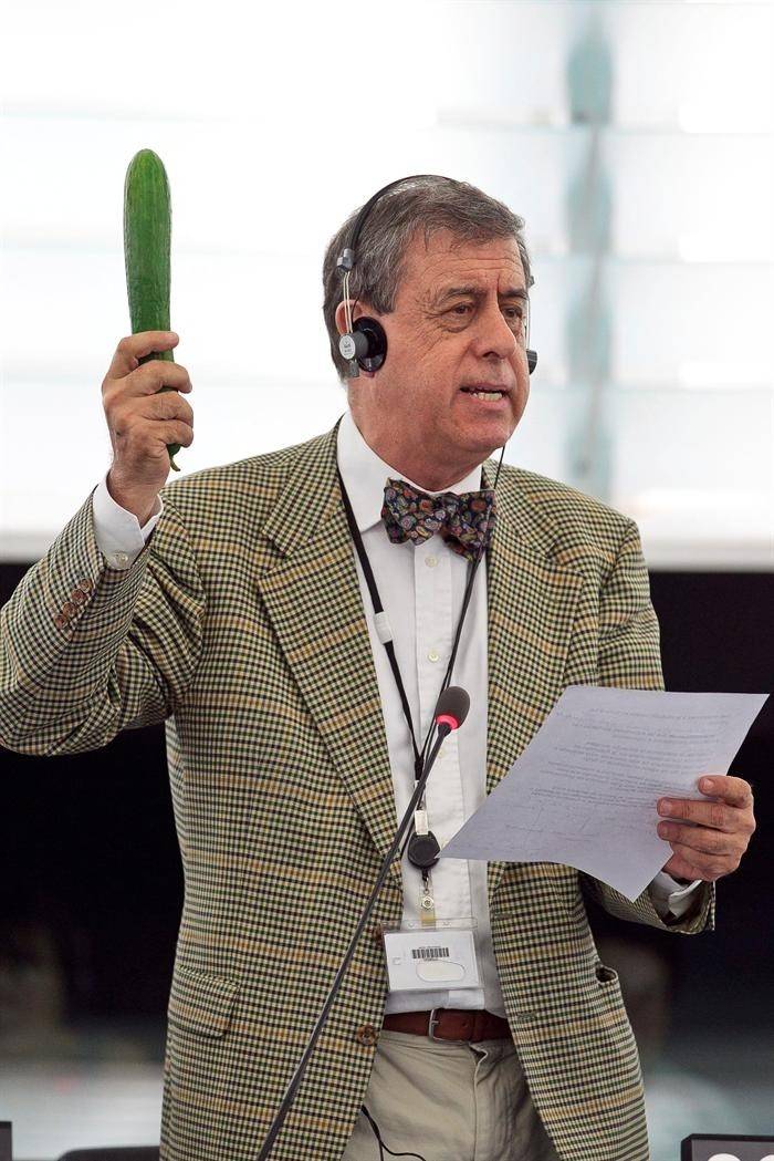 El eurodiputado independiente por UPyD Francisco Sosa Wagner ha empuñado un pepino durante su intervención y ha pedido iniciativas para "reivindicar el honor perdido de los productores de pepinos".