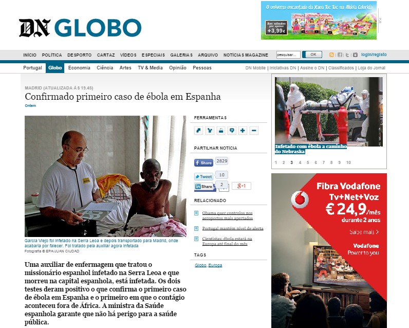 El diario portugués lleva a su potada el "primer caso de ébola en España"