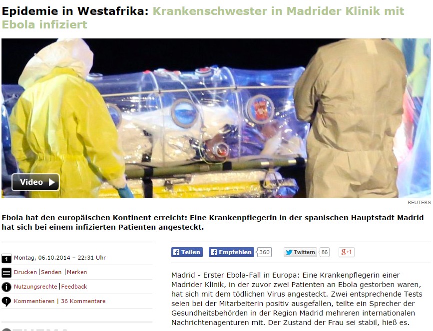 "El ébola ha llegado a Europa", sentencia Der Spiegel.
