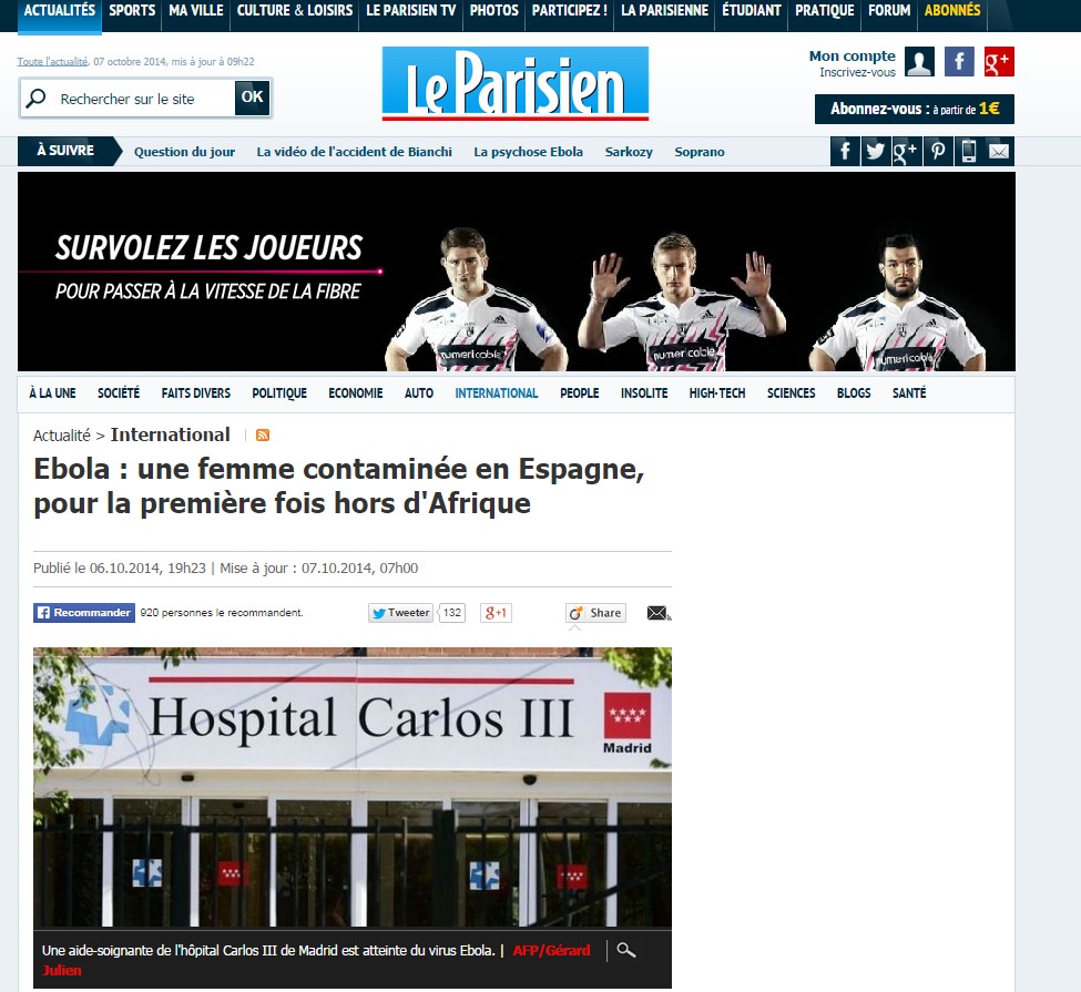 "Ébola: una mujer contaminada en España, la primera fuera de África" titula Le Parisien.