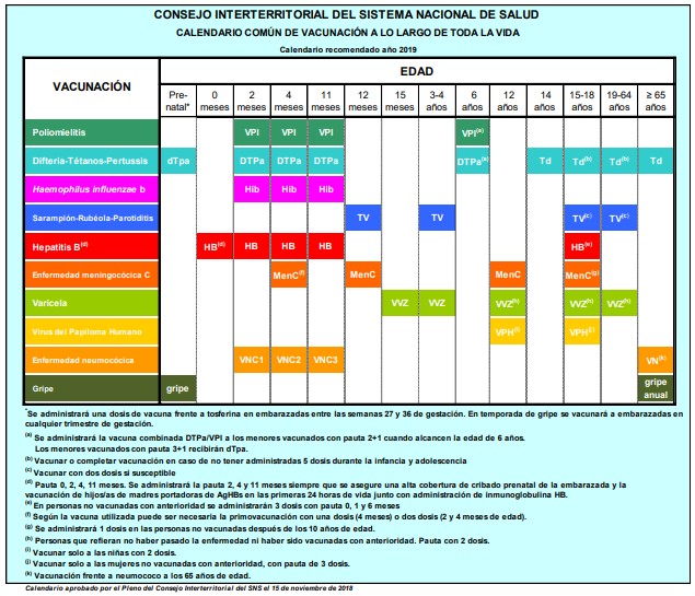El Consejo Interterritorial del Sistema Nacional de Salud, con representación de todas las comunidades autónomas y asesorada por expertos, estableció en otoño un calendario de vacunación infantil estatal con todas las vacunas con financiación pública y las pautas generales de administración. En la práctica, sin embargo, aún no existe un único calendario en España, puesto que es cada autonomía, basándose en esas pautas generales, la que toma la decisión final. La consecuencia es que siguen produciéndose diferencias entre comunidades y hay 17 calendarios oficiales.