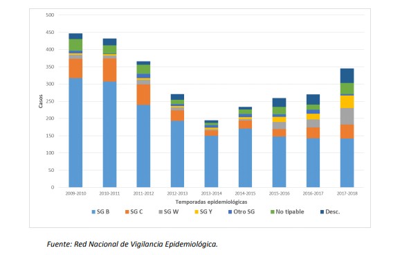 Detrás de la recomendación de la AEP de incluir el Bexsero en la lactancia y la vacuna contra la meningitis A, C, W, y Y a los 12 meses y a los 12 años están los últimos cambios detectados en la incidencia de la enfermedad en nuestro país. Tras una tendencia descendente desde 2000, la meningitis, aunque extremadamente infrecuente, ha repuntado en la temporada 2017-2018 con 372 casos y una tasa de 0,74 por 100.000 habitantes, según datos de la Red Nacional de Vigilancia Epidemiológica.