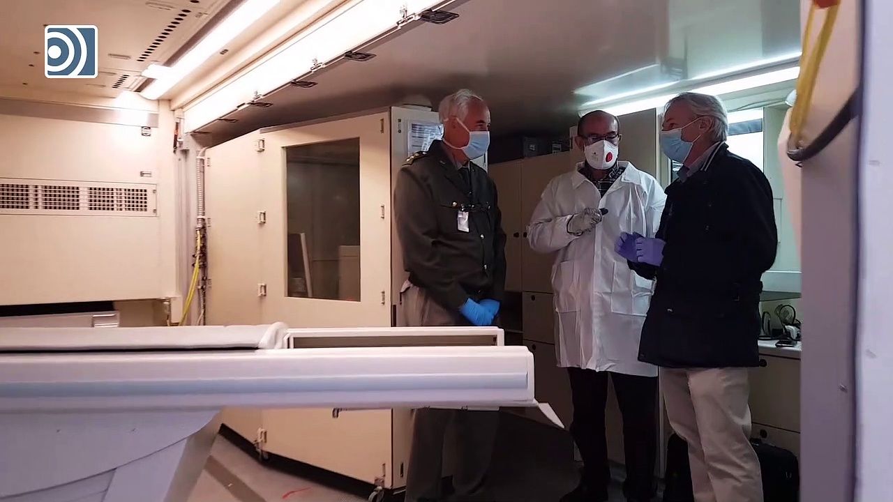 Por su parte, el coronel médico Fernando Juste, que pertenece a la Sanidad del Ejército del Aire, ha indicado que la característica del TAC es que es transportable y está ubicado en un contenedor pues que se abre y se convierte en una sala de 20 metros cuadrados, donde ya está preinstalado el TAC dentro. Así, "se pone en funcionamiento, y en 2 ó 3 horas" lo tienen ya con todas sus capacidades.