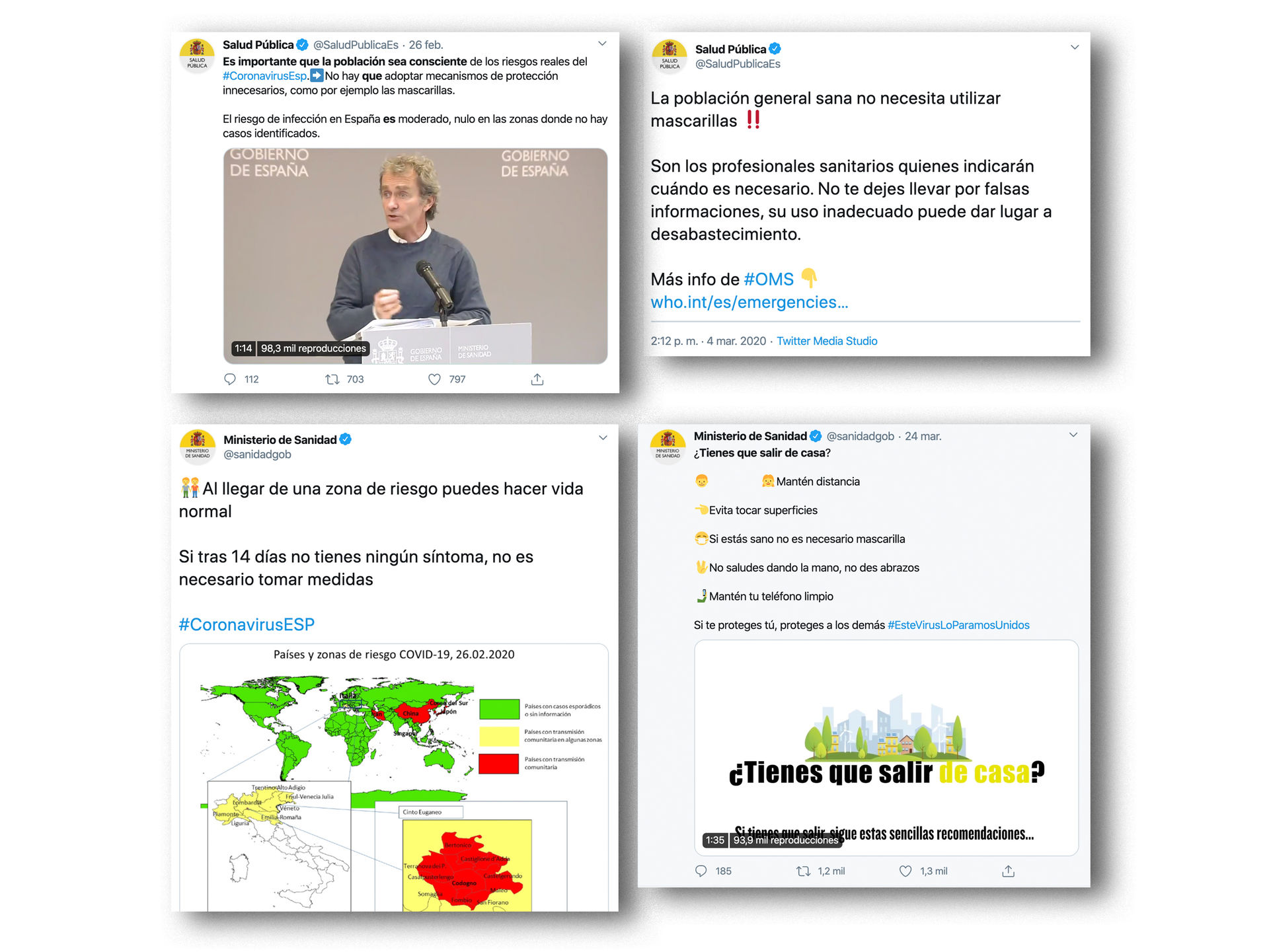 Antes de que Sánchez decretase el estado de alarme, Fernando Simón declaraba que "no era necesario" su uso. De la misma forma se pronunciaba Sanidad, que en su cuenta de Twitter daba estos consejos: