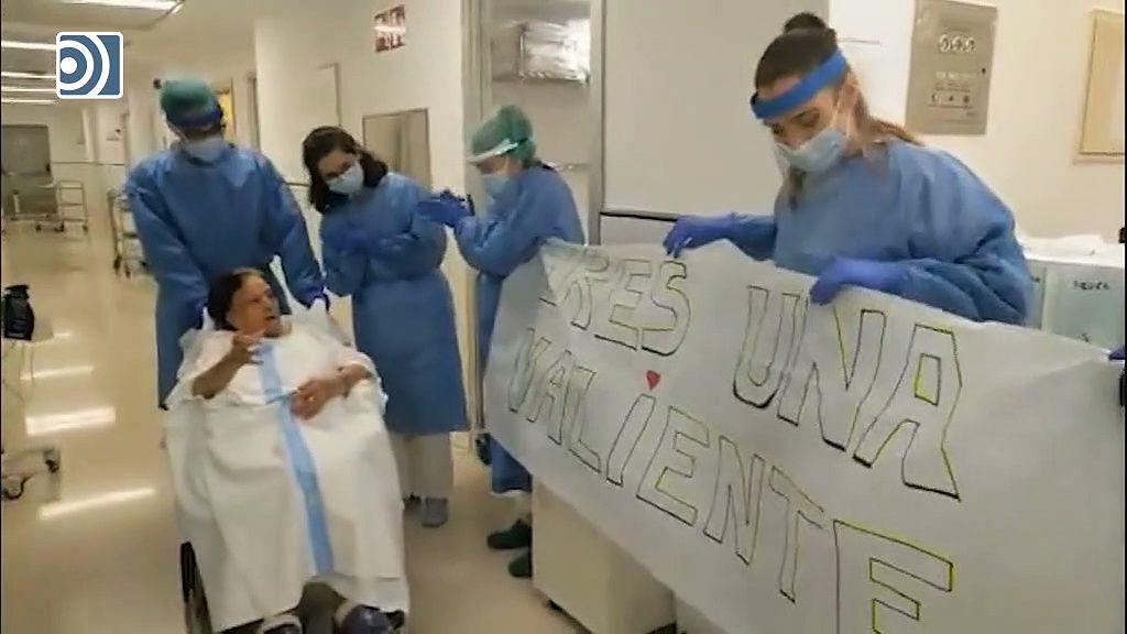 Entre aplausos, este jueves la paciente abandonó la unidad después de 23 días de ingreso, tres en el módulo F de Medicina Interna y los 20 restantes en este espacio que dispone de 56 camas y que alberga a pacientes de residencias o a contagiados de avanzada edad en estado leve.