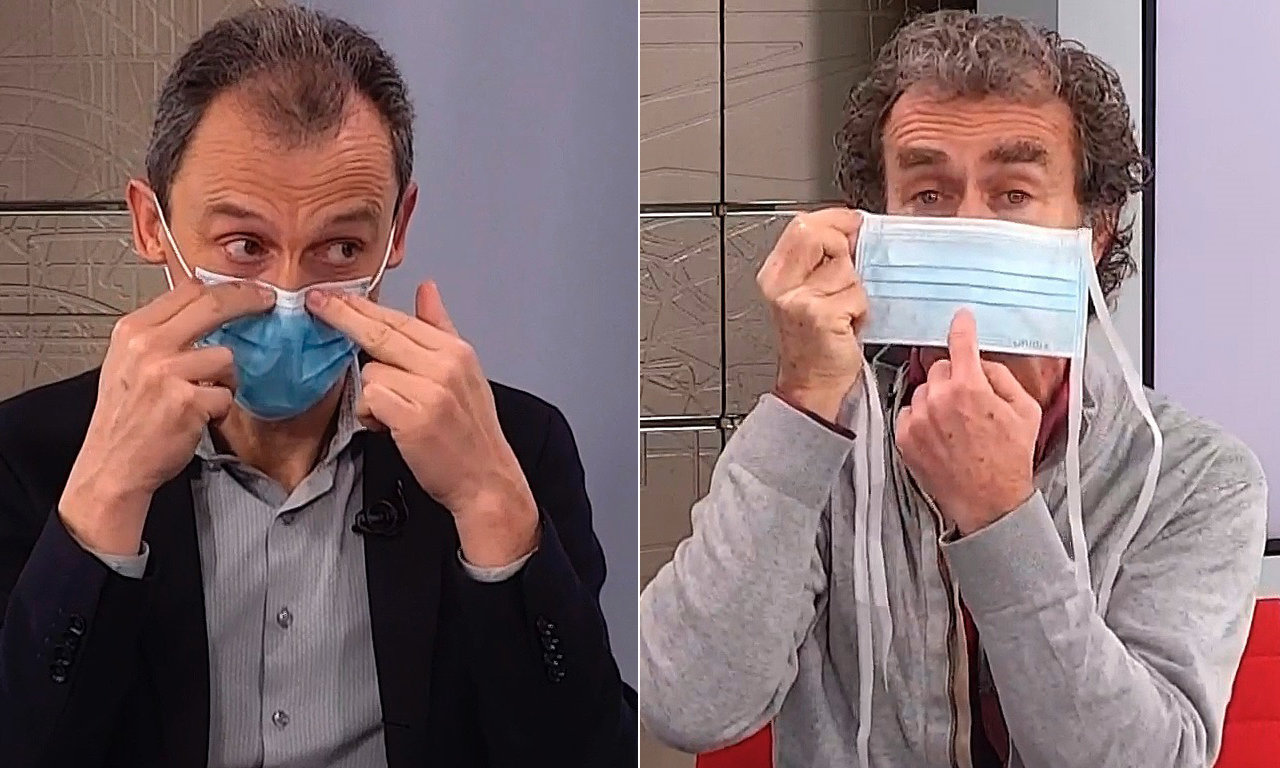 Durante unos minutos del programa especial Duque ha tratado de explicar cómo ponerse una mascarilla, tocándola por todas partes, mientras decía "no hay que tocarla", en un tono divertido.