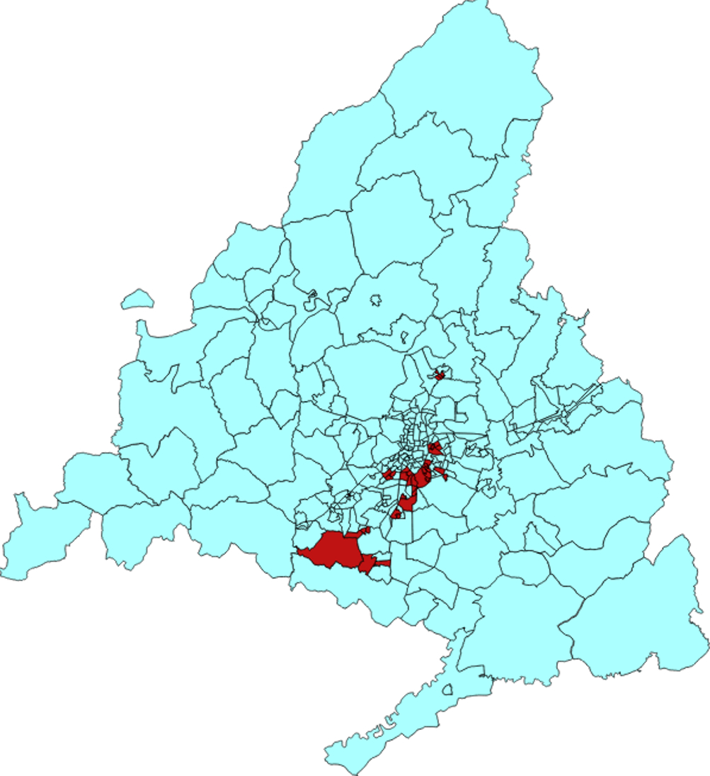 - En el distrito de Usera: Almendrales, Las Calesas, Zofío, Orcasur y San Fermín.