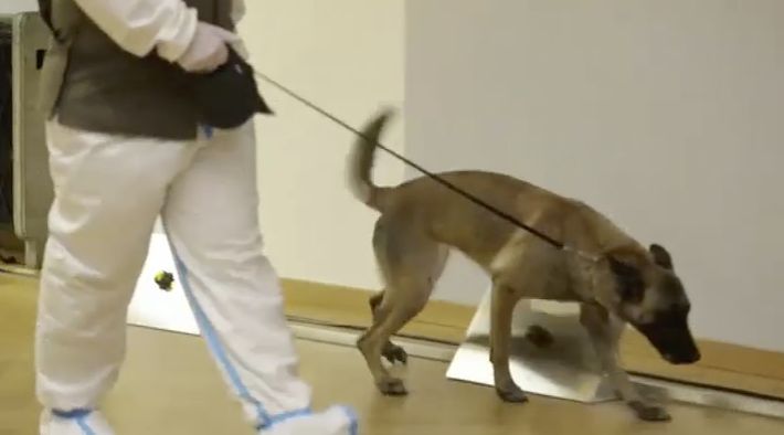 A este pastor belga le basta con oler una muestra en la que la persona contagiada ha echado su aliento durante varios minutos. El perro adiestrado es capaz de detectar quien está enfermo y quien con mucha precisión.
