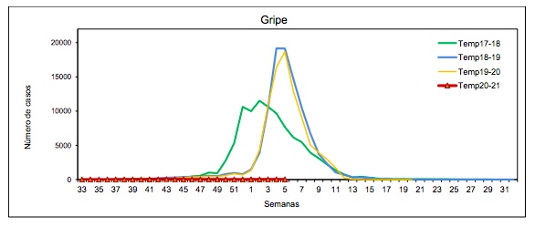 El año pasado la gripe provocó 3.900 muertes mientras que 27.700 personas necesitaron ser hospitalizadas, 1.800 en la UCI. Este año, sin embargo, la enfermedad parece haberse esfumado: el Sistema de Vigilancia de Gripe en España apenas ha secuenciado un puñado de casos desde el comienzo de la temporada. Un ejemplo de lo que está ocurriendo son las cifras de Madrid: sólo se han notificado 139 enfermos de gripe en lo que va de año frente a los 51.551 del año pasado.