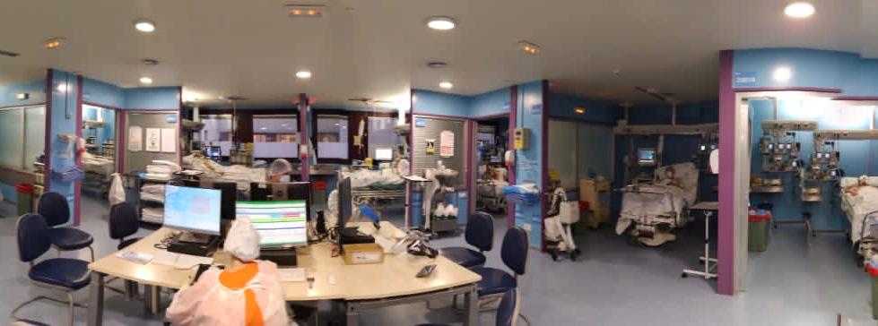 La UCI del Hospital de Getafe está al 100% de su capacidad. "Antes de la pandemia teníamos 18 camas de UCI y 6 de grandes quemados. Ahora mismo tenemos 34 ingresados, estamos con 10 por encima. Y de las 18 camas de la UCI polivalente el 100% son covid". El resto, hasta 34, están en la unidad coronaria, en la de reanimación, en la de grandes quemados, y en la sala URPA que es la unidad de reanimación post anestesia. Todo lleno. Lo hemos conseguido.
