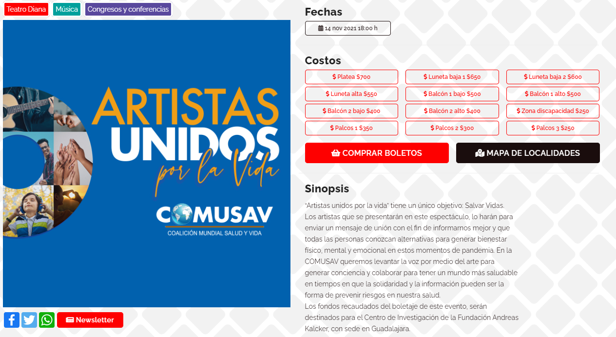 Es el caso del concierto ‘Artistas Unidos por la Vida’ que tendrá lugar el 14 de noviembre en Guadalajara (México).