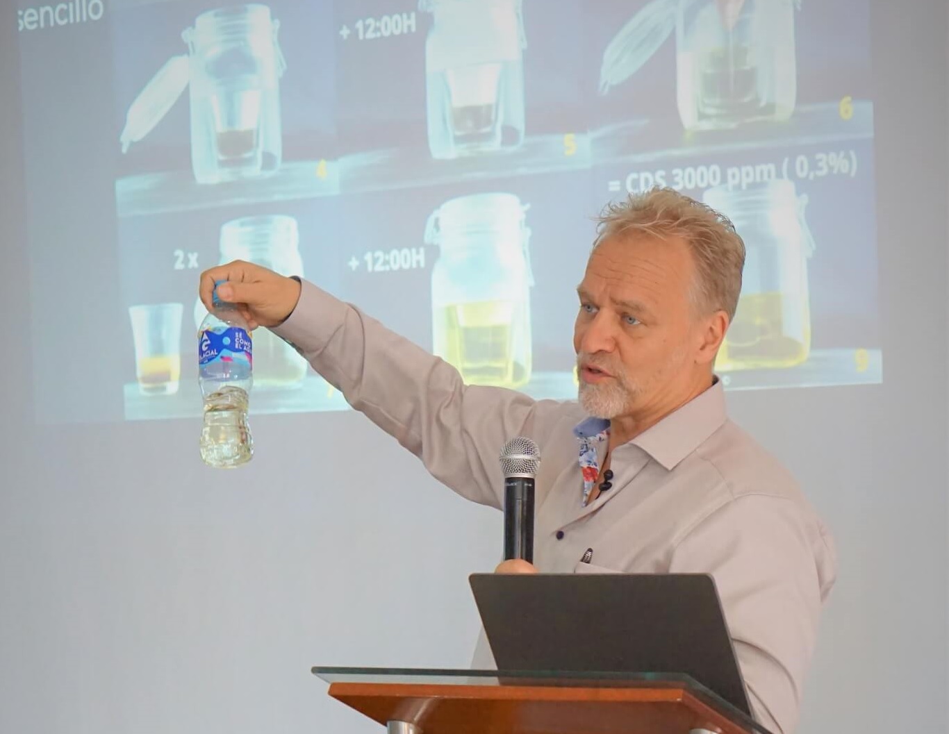 Andreas Kalcker es, en la actualidad, uno de los grandes referentes a nivel mundial de los adeptos al dióxido de cloro, llamados popularmente "bebe lejías".