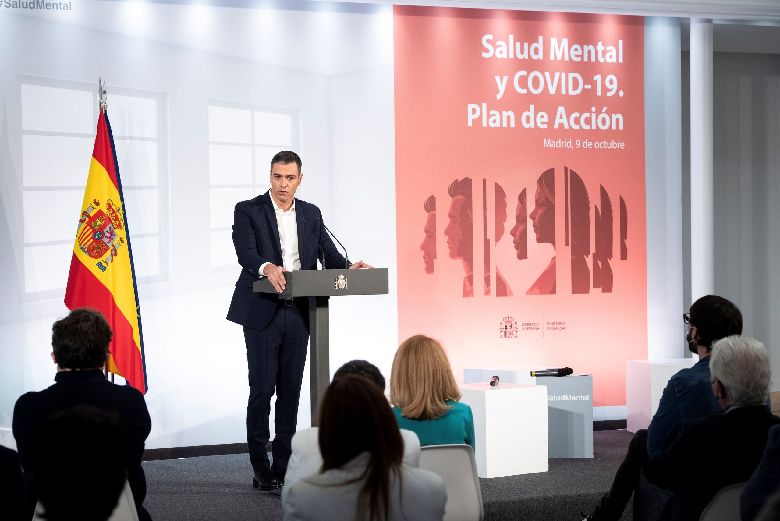 El presidente del Gobierno, Pedro Sánchez, ha anunciado este sábado un Plan de Acción 2021-2024 de Salud Mental que estará dotado con 100 millones de euros. "La salud mental es una prioridad para este Gobierno. Desde el año 2009 no se renueva la estrategia de salud mental, es una hoja de ruta que pretenden avanzar con pasos afianzados hacia la mejora de la salud mental", ha señalado Sánchez durante su intervención en el acto institucional 'Salud Mental y Covid 19, al que también han asistido la ministra de Sanidad, Carolina Darias, y algunas personas que han relatado su experiencia con este tipo de enfermedad.