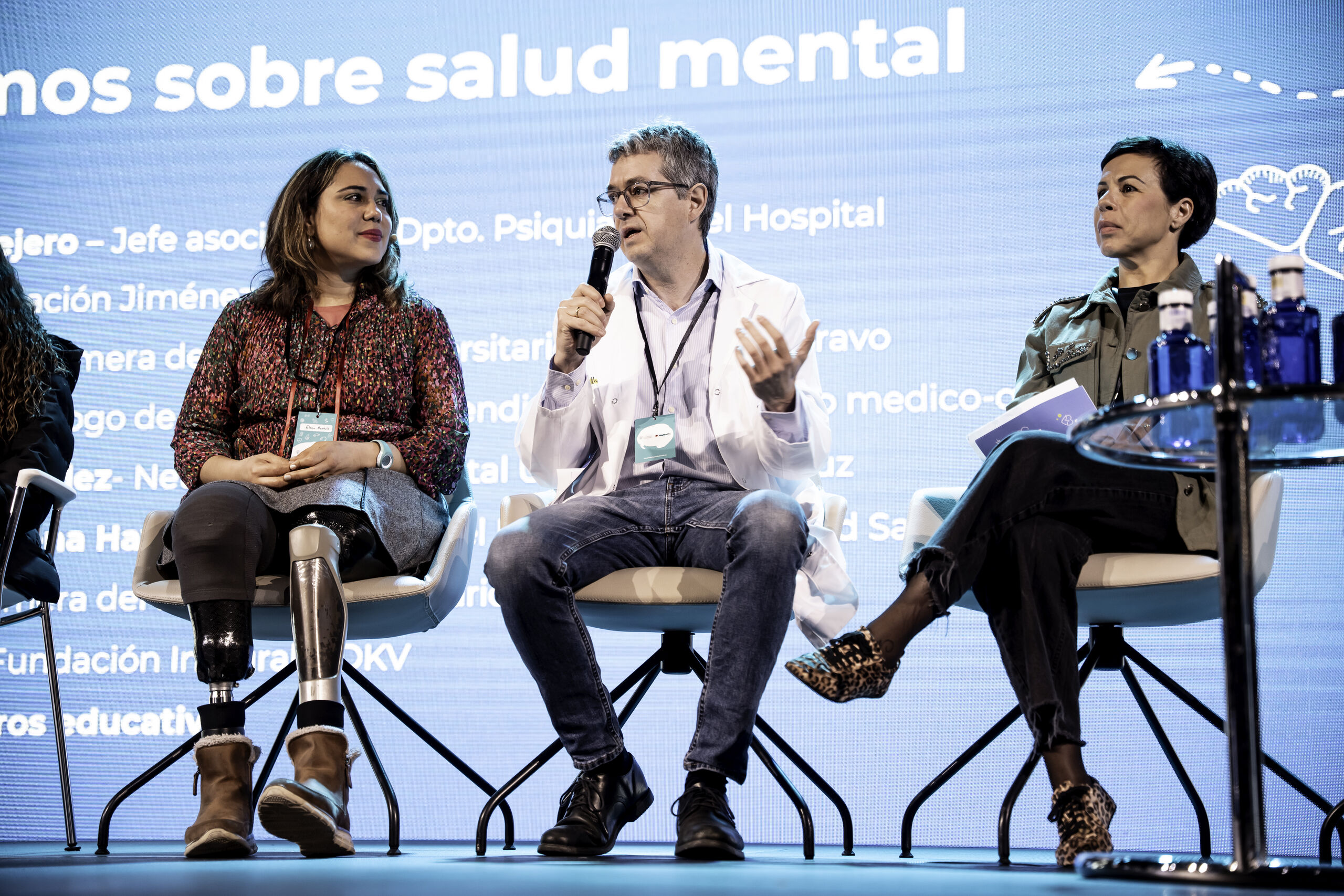 Posteriormente, los alumnos y alumnas de los centros educativos asistentes -St Anne’s School, IES Cardenal Cisneros, Colegio Nuestra Señora del Buen Consejo, IES San Isidoro de Sevilla, Colegio Claret y Colegio Rafaela Ibarra- han tenido la oportunidad de subir al escenario y trasladar sus principales dudas a los profesionales sanitarios de los distintos hospitales involucrados en la ocasión: además del doctor Ovejero (Hospital Universitario Fundación Jiménez Díaz), la enfermera Nerea Moreno (Hospital Universitario Ruber Juan Bravo), el psicólogo deportivo Arturo Gracia (Centro médico-quirúrgico Olympia), la neuróloga Dra. Rebeca Fernández (Hospital Universitario La Luz), la pediatra Dra. María Magdalena Hawkings (Hospital Quirónsalud San José), la nutricionista Belén García (Hospital Universitario La Luz) y la enfermera Marta Ruiz (Hospital Universitario Rey Juan Carlos), junto a la propia Elena Montaño.