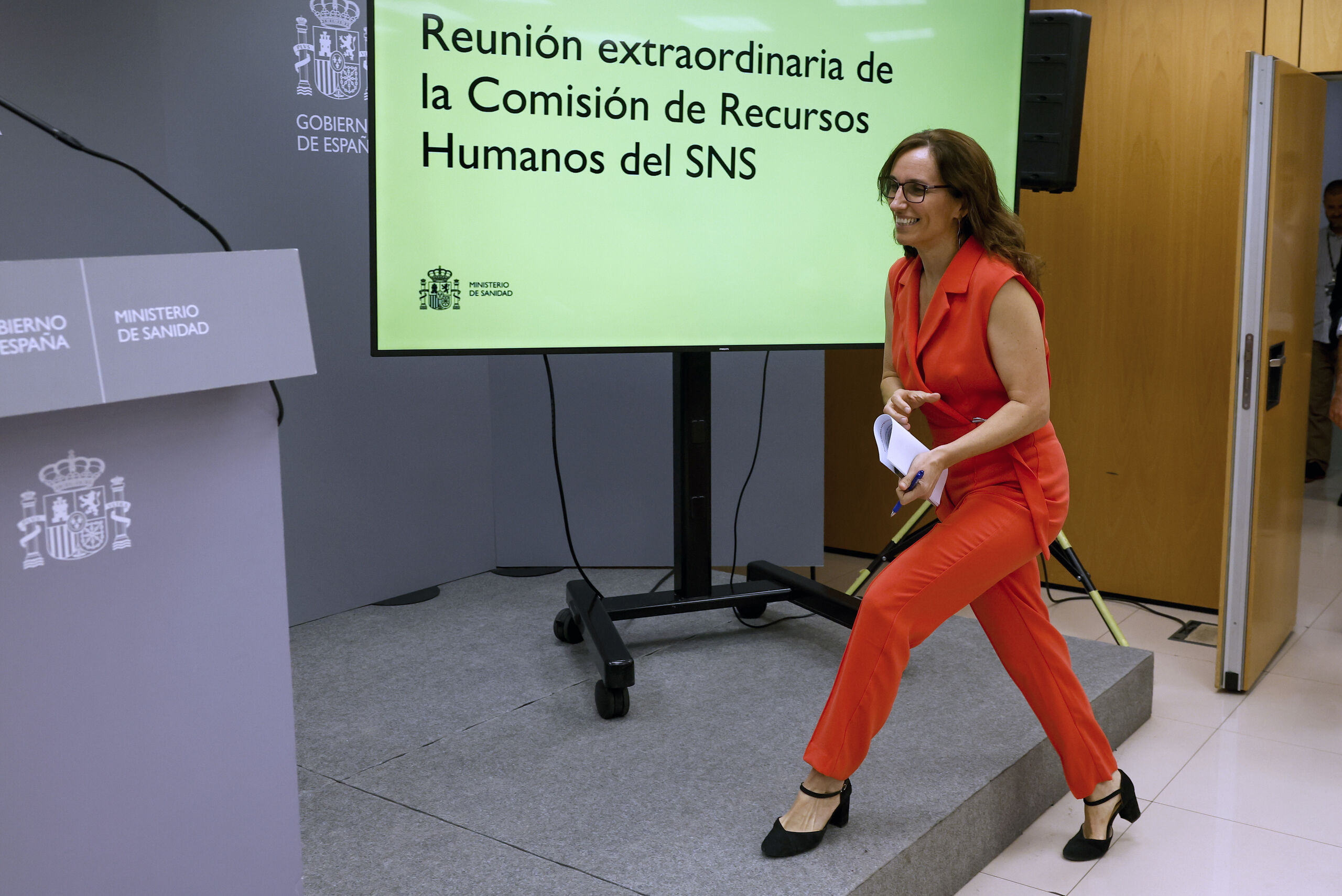 Después de un nuevo encuentro sobre el futuro texto, la ministra Mónica García se refirió en rueda de prensa a las guardias, uno de los principales asuntos de fricción. García dijo que ella misma había sufrido "las guardias de 24 horas", perjudiciales "para profesionales y pacientes", e insistió en su intención de reducirlas a 17, con jornadas laborales máximas de 45 horas. En el turno de preguntas, cuestionada sobre la "obligatoriedad" de esas guardias hasta los 55 años, lanzó varias afirmaciones que han escocido en el sector: