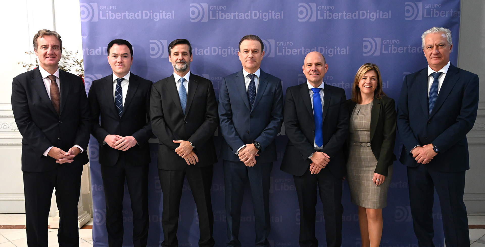 Javier Somalo, director de Libertad Digital junto a Fátima Matute, consejera de Sanidad de la Comunidad de Madrid, María Martín, consejera de Salud del Gobierno de La Rioja y Luis Rodríguez, director General de Libertad Digital.