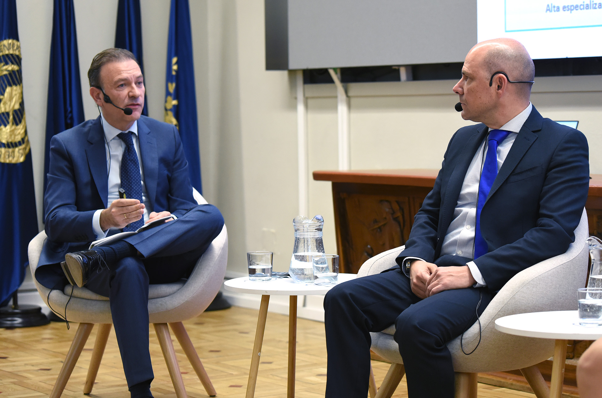 Luis Mendicuti, secretario general de Alianza de la Sanidad Privada Española (ASPE) y Enrique de Porres, consejero delegado de Asisa, con la moderación de Ignacio Balboa.